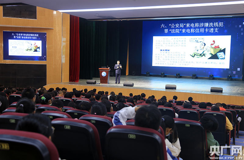 反詐中心民警為師生們講解防范電信網(wǎng)絡(luò)詐騙案例和應(yīng)對措施(央廣網(wǎng)發(fā) 通訊員劉志堅(jiān) 攝)