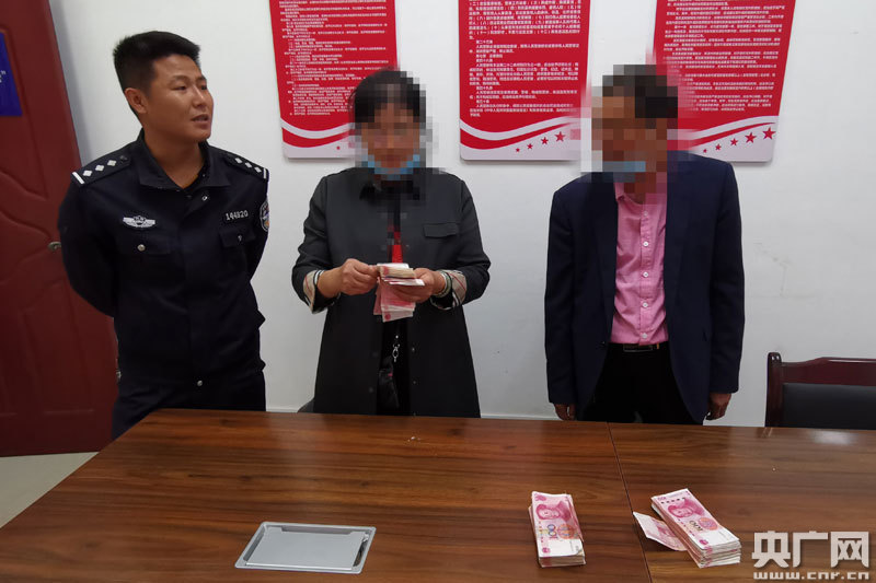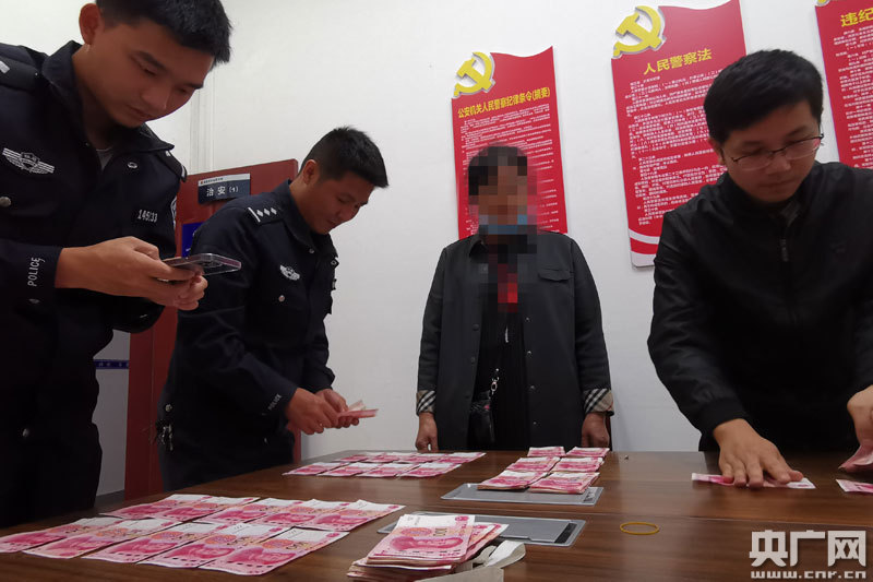 民警當(dāng)面清點(diǎn)現(xiàn)金(央廣網(wǎng)發(fā) 通訊員供圖)