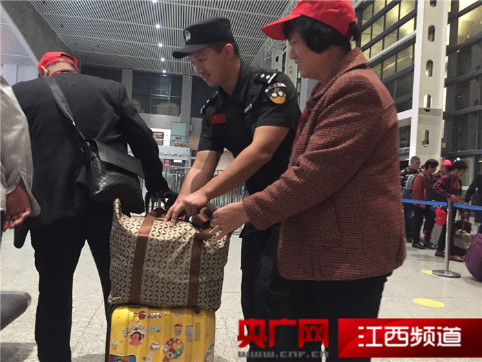 央廣網(wǎng)福州10月23日消息(記者張子亞 通訊員張銳潔 攝)一個有300多人的“夕陽紅”旅游團昨晚從福州火車站北廣場進站乘坐高鐵集體旅行。為了給這一特殊群體創(chuàng)造安全無憂的綠色通道,正在站區(qū)執(zhí)勤的福州鐵路特警隊員們十分細心,全程為老年旅客們提拿行李、引導進站,這一暖心舉動受到了現(xiàn)場旅客的嘖嘖稱贊。