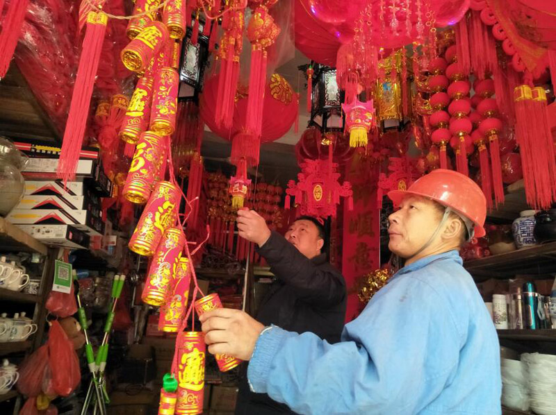 1月29日,農(nóng)歷臘月二十四是南方的小年,江西省浮梁縣城到處張燈結(jié)彩,處處是濃濃的年味,圖為一顧客正在電子鞭炮。由于近年來(lái)禁止燃放鞭炮,這種安全、噪音小、無(wú)污染的電子鞭炮受到老百姓的青睞