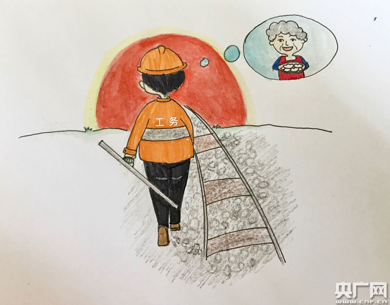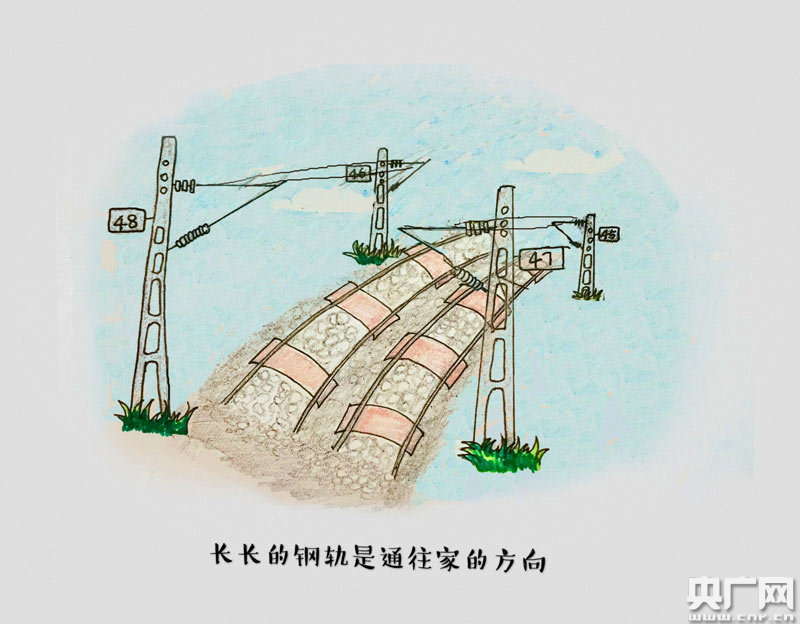 長(zhǎng)長(zhǎng)的鋼軌是通往家的方向(央廣網(wǎng)發(fā) 吳怡憬 畫(huà))