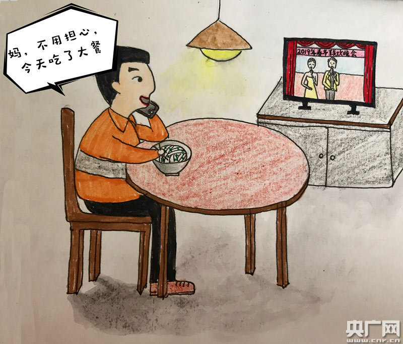 值守,一個(gè)人的年夜飯(央廣網(wǎng)發(fā) 吳怡憬 畫(huà))