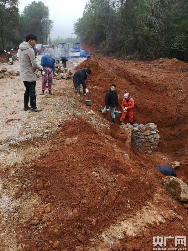 2月12日,村支書趁著村民回家過年的契機,到村里一一打招呼后,村民都踴躍支持,當天就來了四五十位村民參與修路。于是就出現(xiàn)了文章開頭的一幕。