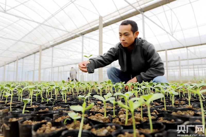 3月23日,張家山農(nóng)場主羅建平在打理瓜苗(央廣網(wǎng)發(fā) 通訊員劉麗強(qiáng)攝)
