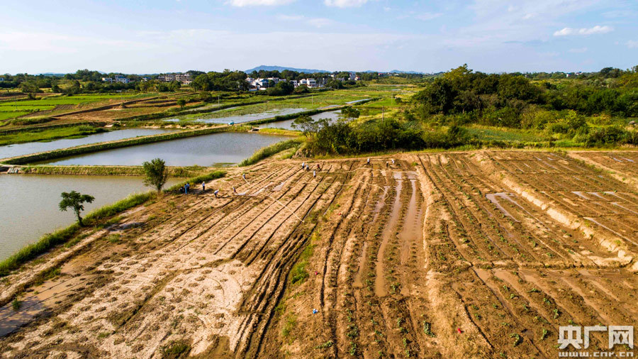 8月26日,湖口縣城山鎮(zhèn)團墩村產(chǎn)業(yè)扶貧基地,村民正在抽水灌溉南瓜苗。(央廣網(wǎng)發(fā) 通訊員李學(xué)華攝)