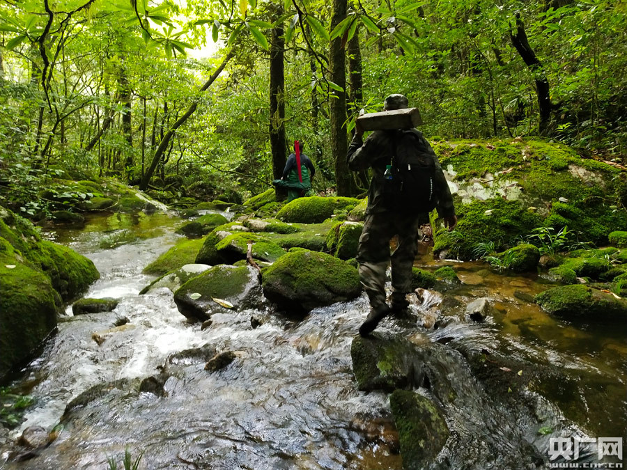 很多時候,去調(diào)查點的途中根本沒有路,一踏入就會有“草深似!钡母杏X。有時,滿山都是帶刺的灌木叢,視野受限,即使空手走路,都會摔的前俯后仰,身背行裝的他們,時常有“前滾翻”“后滾翻”的體操動作;有時光腳涉河,有時手腳并用翻溝越坎,要提防藏在竹枝、樹枝上,落葉里的山螞蟥、蜱蟲、毒蛇、毒蜂的攻擊,甚至還有狩獵陷阱。