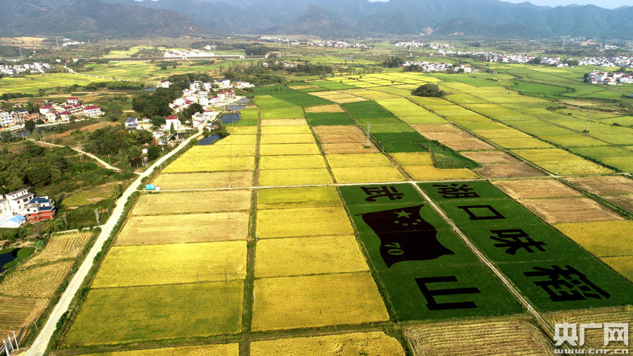 央廣網(wǎng)湖口9月18日消息(記者鄧玉玲 通訊員鄭飛華)9月17日,湖口縣武山鎮(zhèn)武前村金黃稻浪層層疊疊,從高空俯瞰,猶如“大地染金”,與稻田里的巨幅書畫、秀美的山川、美麗的村莊相映成趣,點綴著秋收的大地,美不勝收。