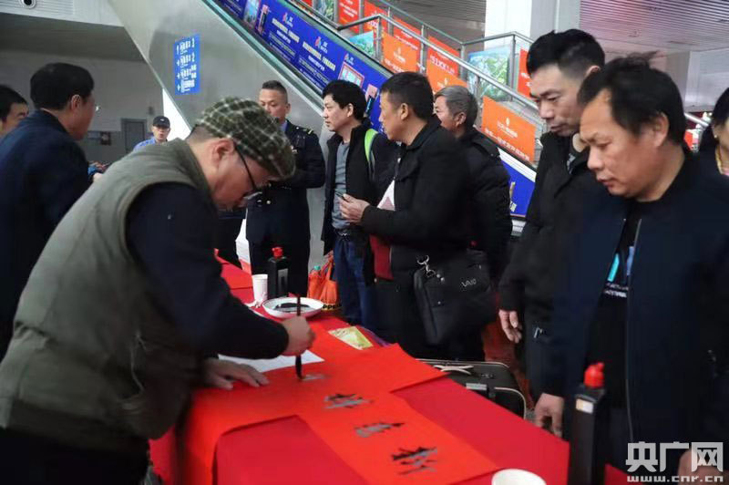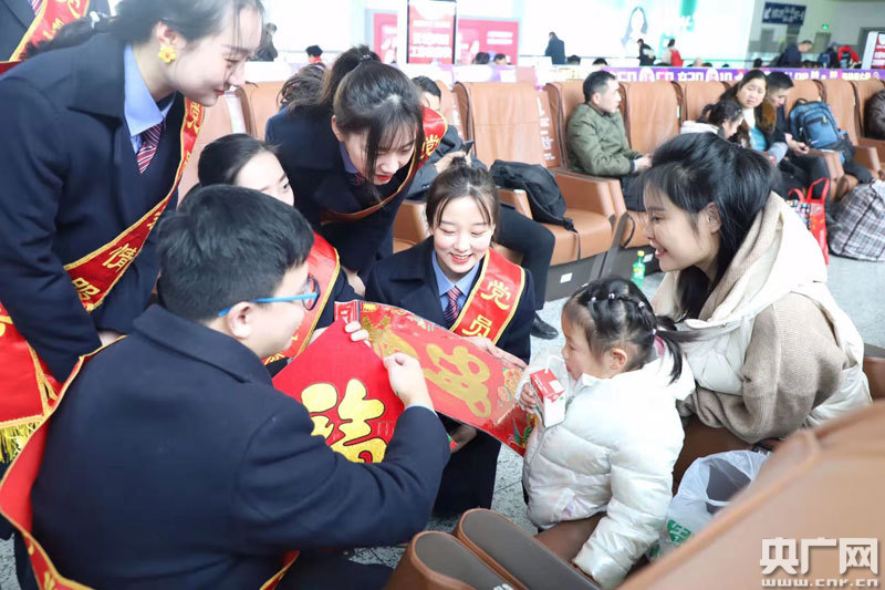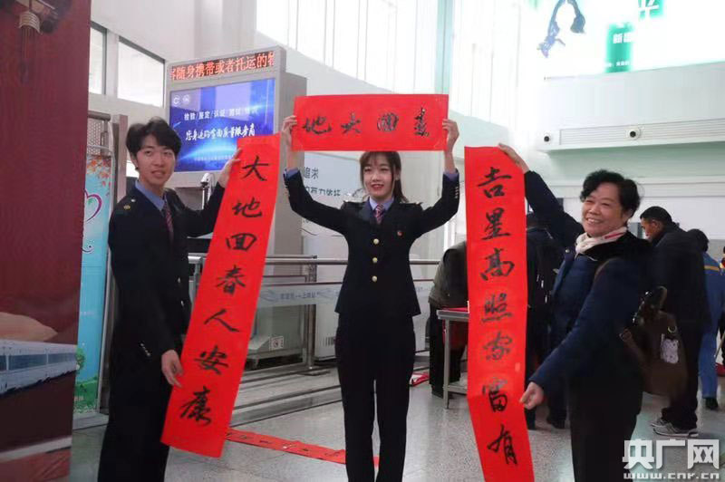 央廣網(wǎng)上饒1月10日消息(記者范存寶 通訊員陳衛(wèi)紅 梁曉晨)1月10日上午,上饒站候車室內(nèi)一場(chǎng)春運(yùn)首日文藝匯演正如火如荼的進(jìn)行著。伴隨著一首《我和我的祖國(guó)》,正式拉開(kāi)了文藝匯演的序幕。為實(shí)現(xiàn)“平安春運(yùn)、有序春運(yùn)、溫馨春運(yùn),讓旅客體驗(yàn)更美好”的目標(biāo),車站干部職工準(zhǔn)備了形式多樣、內(nèi)容豐富的文藝節(jié)目,同時(shí),今年在上饒站實(shí)行電子客票業(yè)務(wù),車站干部職工在首日活動(dòng)中向旅客宣傳電子客票的使用,同時(shí)免費(fèi)向旅客發(fā)放春運(yùn)上饒站列車時(shí)刻表和贈(zèng)送春聯(lián)、春“!被顒(dòng),讓旅客在春運(yùn)第一天感受到鐵路服務(wù)的溫馨與美好。