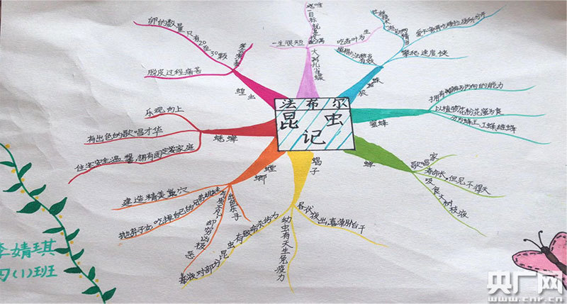 學(xué)生李婧琪看完《昆蟲記》做思維導(dǎo)圖