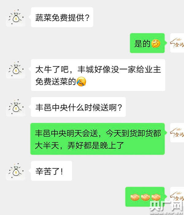 公司負(fù)責(zé)人說“這些新鮮蔬菜是我們金馬公司從小港蔬菜基地采購來的,為了更好的服務(wù)業(yè)主,避免業(yè)主出行帶來的交叉感染,我們舉辦了這次免費(fèi)送蔬菜的活動。不僅在贛江學(xué)府,御龍城、御龍府、豐邑中央等都會有這樣的行動。積極承擔(dān)社會責(zé)任,做一個有溫度、有擔(dān)當(dāng)?shù)钠髽I(yè),為豐城加油!”