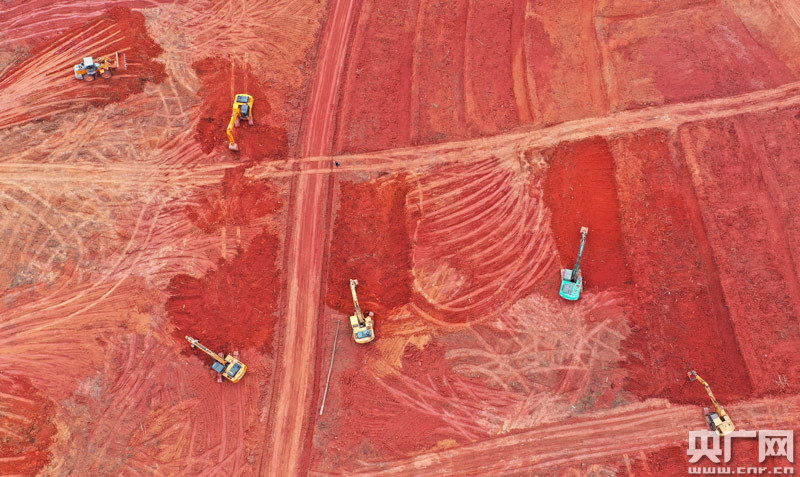 航拍,農(nóng)業(yè)機(jī)械正在進(jìn)行土地整理施工作業(yè)(央廣網(wǎng)發(fā) 通訊員鄧和平/攝)