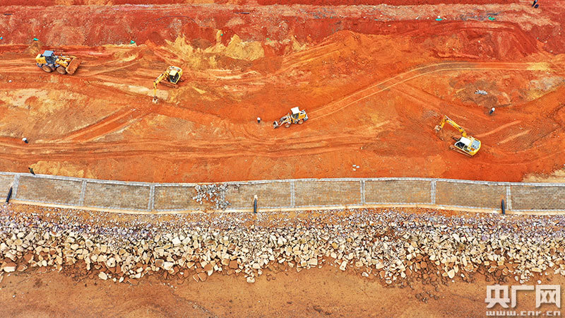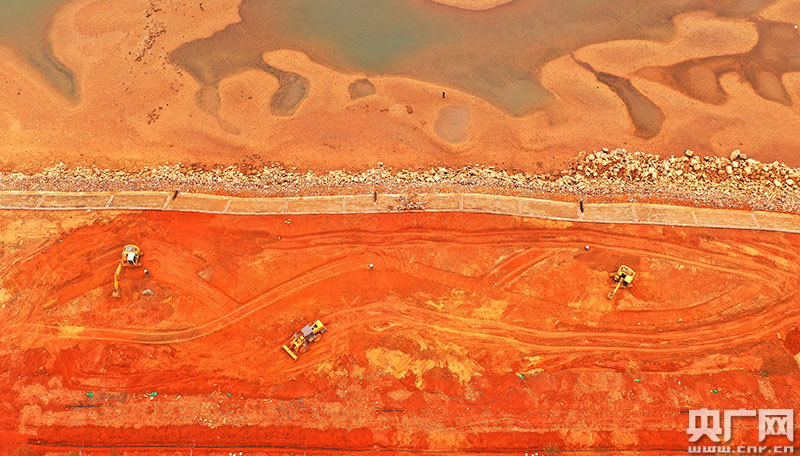 濱江景觀工程施工現(xiàn)場(chǎng),大型機(jī)械設(shè)備正在緊張作業(yè)(央廣網(wǎng)發(fā) 通訊員司馬天民/攝)