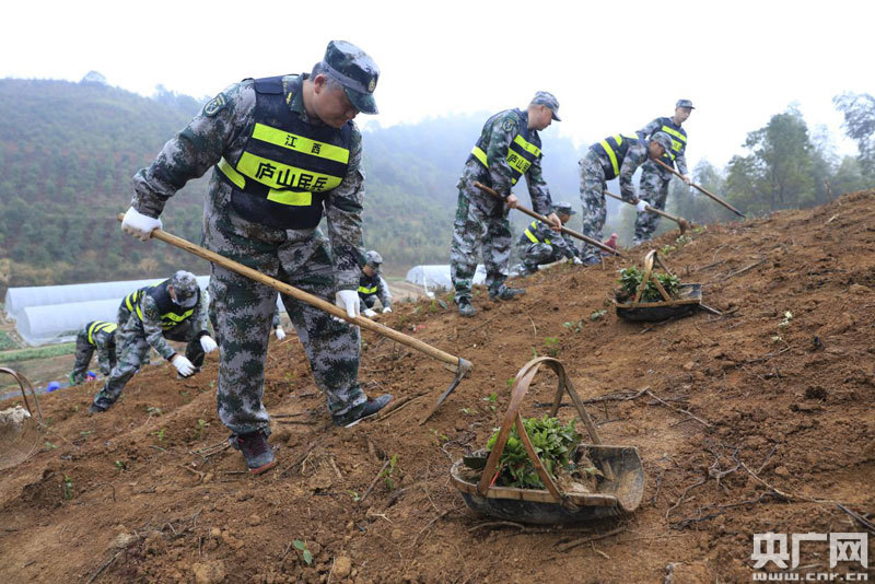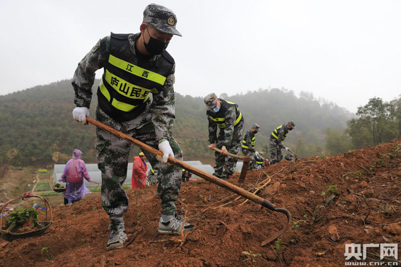 央廣網(wǎng)九江3月12日消息(記者王一凡 通訊員韓俊烜)又是一年植樹節(jié),江西廬山市春雨綿綿,正是茶葉春栽春管的好時節(jié)。3月12日,位于廬山五老峰下、鄱陽湖畔的海廬茶博園扶貧基地千畝云霧茶園,數(shù)十名民兵在這里與茶農(nóng)一起栽植茶苗,為產(chǎn)業(yè)扶貧助力。