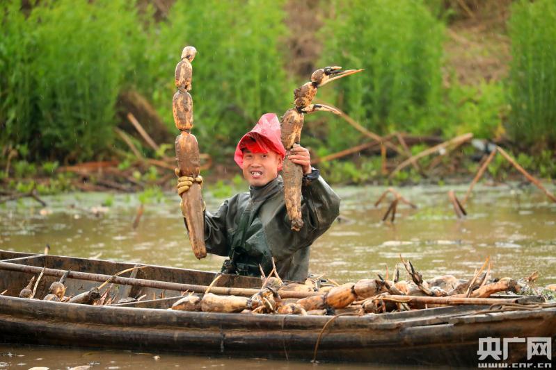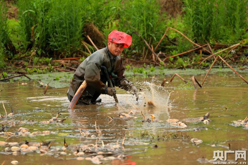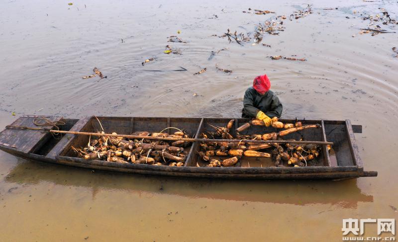 農(nóng)民正在采收蓮藕