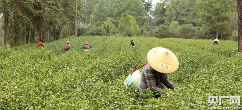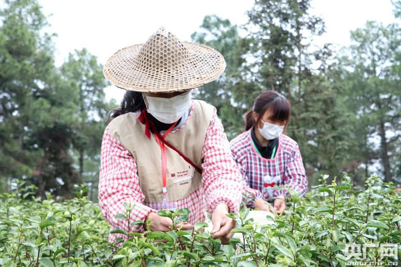 位于該鄉(xiāng)恩山村的茗龍公司茶園里綠意盎然、生機(jī)勃勃。測(cè)完體溫、領(lǐng)到口罩的150余名采茶工人分散開忙碌起來。