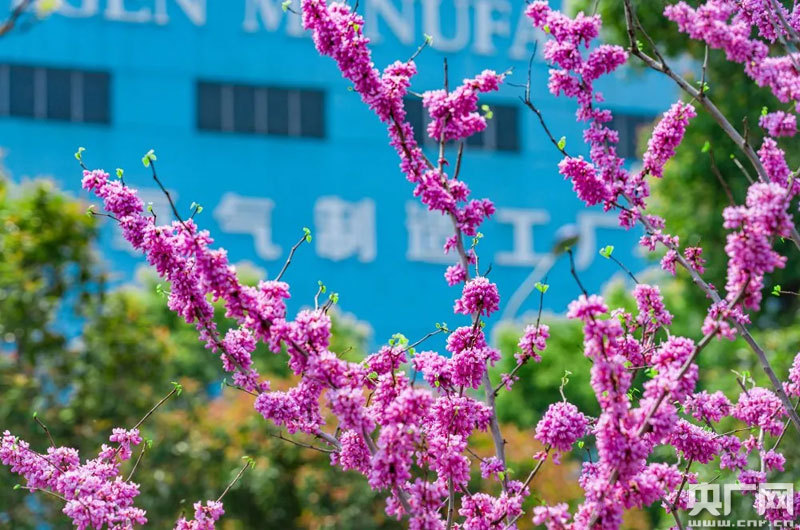 萍安鋼鐵廠內春花爛漫,生的氣息蓬勃(央廣網發(fā) 通訊員張韶濱/攝)