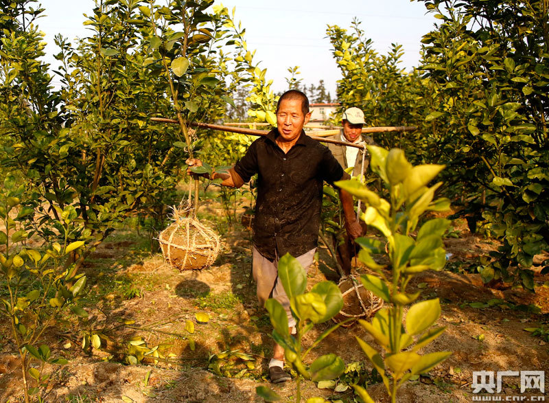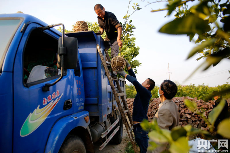 央廣網安福3月20日消息(記者王一凡 通訊員劉志宏 劉慧娜)眼下,安福的井岡蜜柚育苗戶們開啟了“日收斗金”模式,在苗圃里,一棵棵茁壯的柚苗被挖起、捆扎、裝車,起運到各地!斑@一車是4年的苗子,一棵賣100塊。”橫龍鎮(zhèn)盆形村苗農彭玉煌指著即將發(fā)往萍鄉(xiāng)市去的貨車,眉開眼笑地說。這一車苗子,他今天就收了4萬塊。而他家去年賣柚子也進賬8萬多。