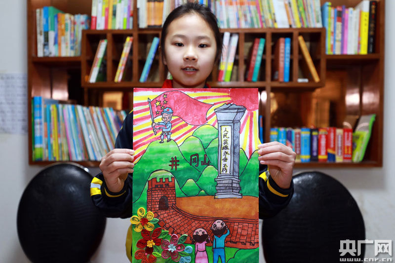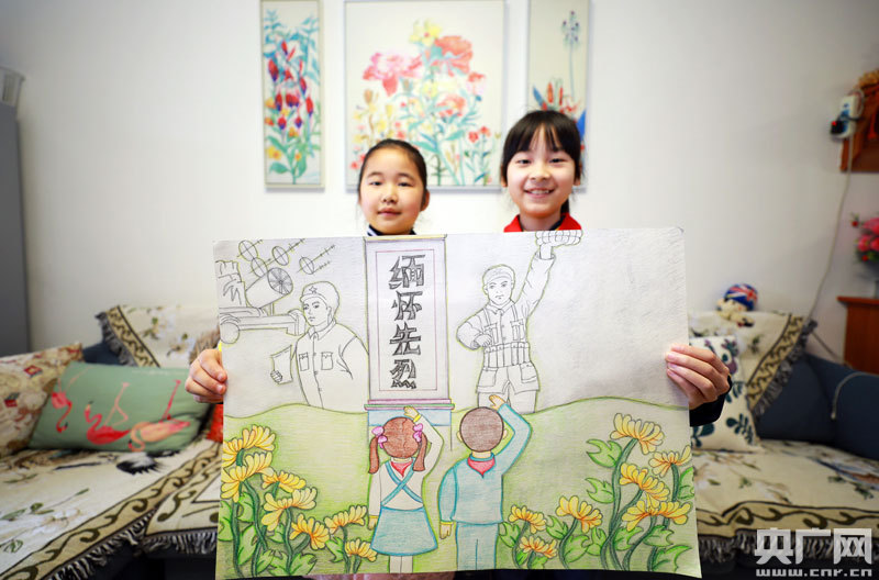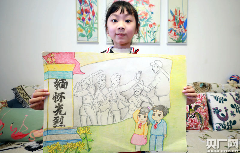 4月3日,江西省吉安市泰和縣學(xué)生展示自己創(chuàng)作的“緬懷先烈”主題繪畫作品