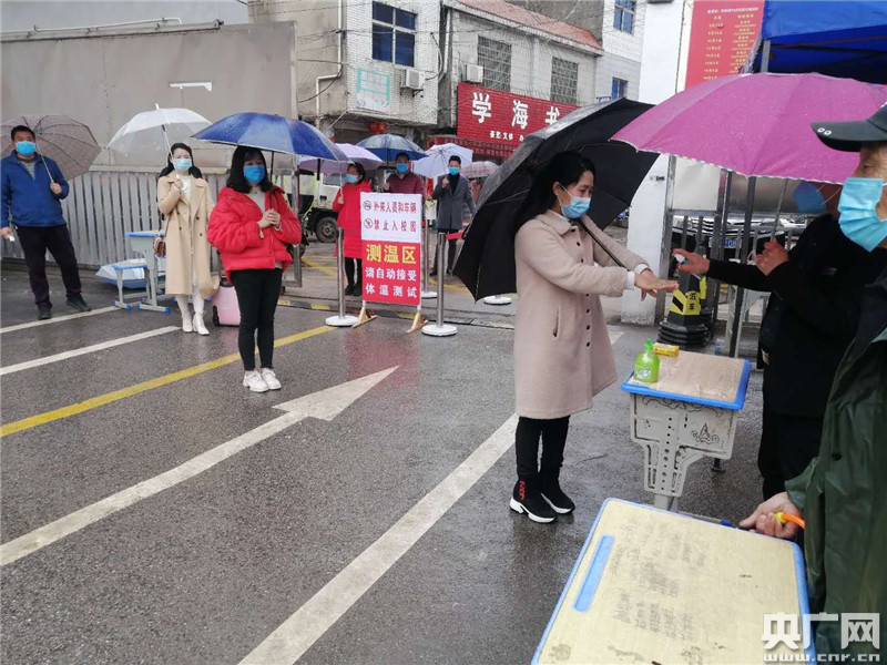 4月2日,即將開學(xué)復(fù)課的學(xué)校開展疫情防控模擬演練。(央廣網(wǎng)發(fā) 彭躍前/攝)