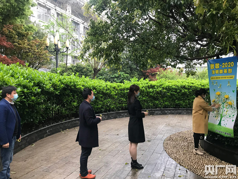 “我們一定會牢記使命,踐行和傳承英烈們的無私奉獻精神!4月4日上午9時,在吉水縣文化公園內,縣文廣新旅局的職工代表在這里舉行“致敬2020,清明祭英烈”活動,現場,職工代表排列整齊,向英烈們表達了敬仰之情,他們通過系綁黃絲帶、敬獻鮮花的方式對抗擊新冠肺炎疫情斗爭犧牲烈士進行哀悼,踐行文明祭掃方式,表達對英烈的感恩懷念。同時,他們積極發(fā)動文旅志愿者,大力宣傳文明祭祀,引導群眾不在街巷、城墻、廣場、小區(qū)、綠化帶、建筑物等公共場所焚燒紙錢,攜手共建一個“清、靜、整潔”城市面貌,做革除陋習、文明祭掃的倡導者、先行者、維護者。