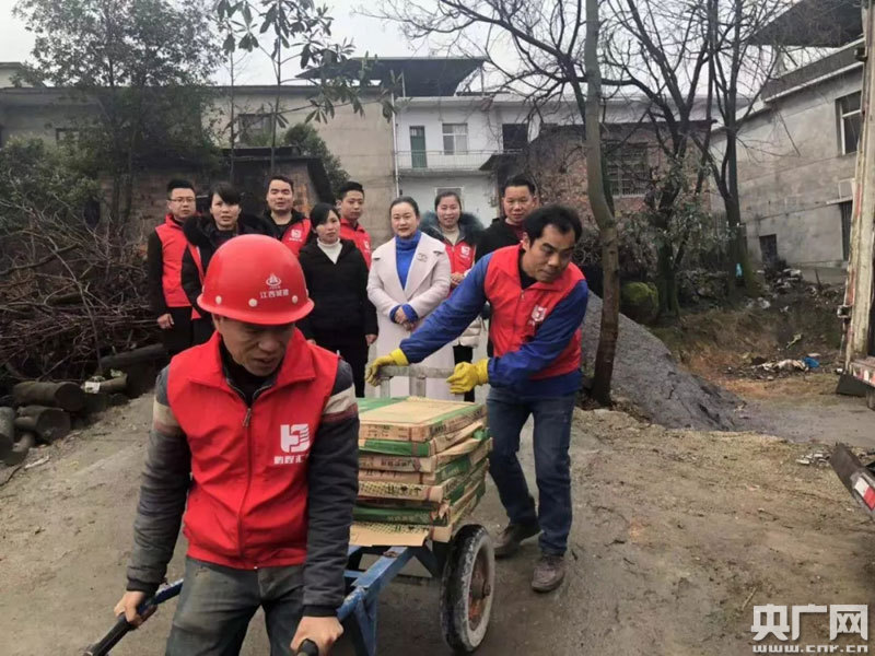 愛心企業(yè)家給鐘分英家送瓷磚