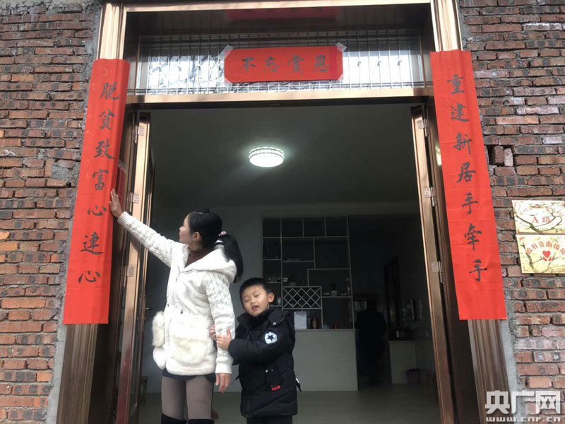 鐘分英在新家貼上了不忘黨恩的對聯(lián)
