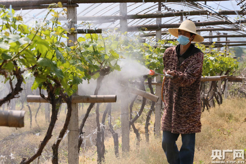 4月15日,江西省瑞昌市高豐鎮(zhèn)高豐村蔣家葡萄基地,農(nóng)戶(hù)正在進(jìn)行剪枝、噴灑農(nóng)藥。