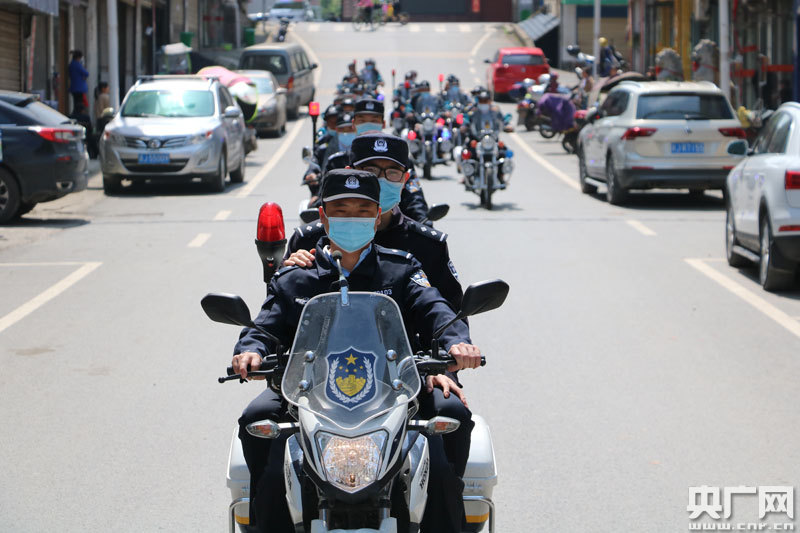 治安巡邏車列陣上路巡邏(央廣網(wǎng)發(fā) 通訊員張?zhí)?攝)