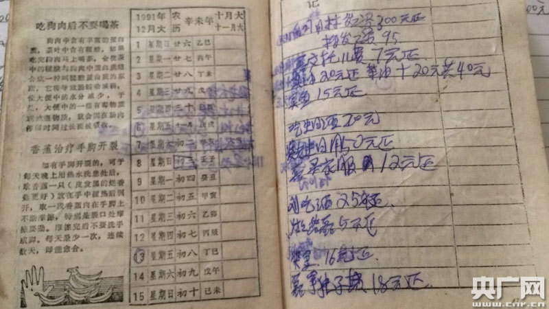 午后暖暖的陽(yáng)光在曾春梅身上灑了一道光圈。54歲的她搬張小板凳靠門(mén)而坐,饒有興致地打開(kāi)話匣子,聊起了她愛(ài)記賬的緣由:“上世紀(jì)八十年代就開(kāi)始記賬了,不過(guò)都是些流水賬,說(shuō)到底還是因?yàn)槟悄觐^窮,每一筆收入和開(kāi)支都得記清楚,精打細(xì)算才能過(guò)日子,這一記就是十幾年!