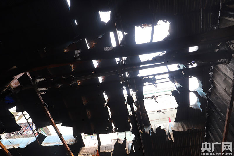 著火點(diǎn)上方頂棚被燒出窟窿
