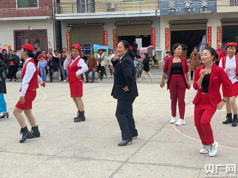 羅曉敏和村民一起跳廣場(chǎng)舞(央廣網(wǎng)發(fā) 通訊員余紫璇 攝)