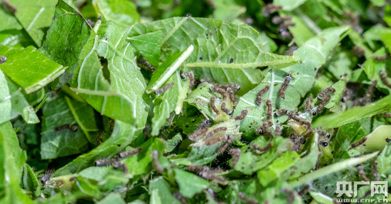 剛孵出的蠶寶寶又黑又小 吃得倒不少