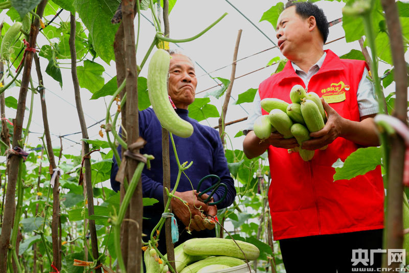5月6日,江西省永新縣禾川鎮(zhèn)汴田村第一書記吳頁寶(右一)在幫助村民采摘黃瓜