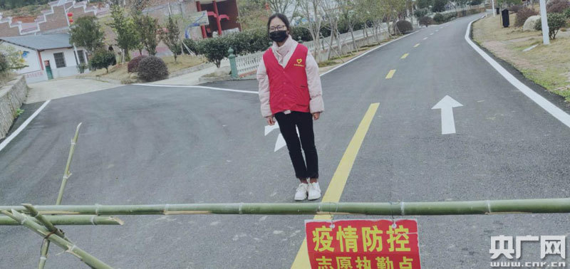 貧困戶喻霞在清溪村小組疫情防控點參加志愿者服務