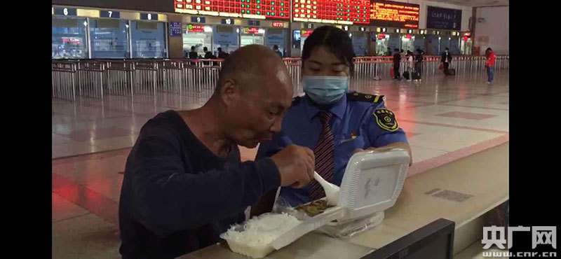 售票值班員楊柳自掏腰包為黃大爺買盒飯
