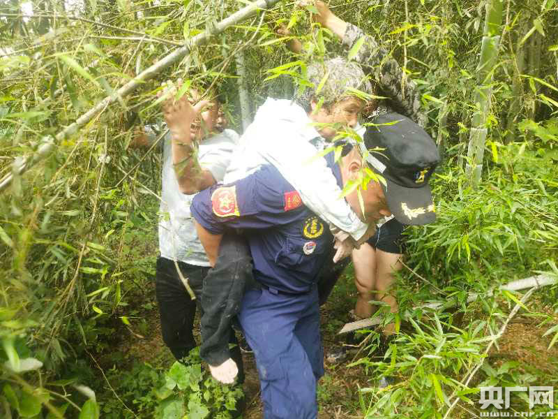 雖然遇到了困難,但搜救人員一直沒有放棄。直到第六天,終于在一處山谷中找到了走失的老人,當時老人衣服全部濕透,皮膚已被雨水浸泡得發(fā)脹,身上有多處傷痕。參加搜救的鄉(xiāng)村醫(yī)生劉沿發(fā)立即對老人身體進行了檢查:“我們到的時候,患者已經(jīng)出現(xiàn)了脫水的癥狀,四肢全部都是冰涼的,呼吸也急促,血壓也不穩(wěn)定。像這種情況下去,如果躺在那個地方再過兩天可能就有生命危險了。”