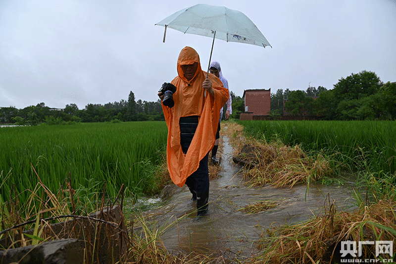 7月10日晚,他在羅溪鎮(zhèn)回峰村委會與搶險突擊隊堅持到第二天零晨四點才回家,睡了不到兩個小時后又開車趕到架橋鎮(zhèn)嶺背村,上午九點又趕回羅溪鎮(zhèn)回峰村;7月12日,他到軍山湖大堤七里段和三陽段,拍攝守護在大堤上的巡查隊。7月13日,他在馬咀湖排撈站,拍攝單退圩堤開閘泄洪的歷史性一刻。7月14日,三里鄉(xiāng)信西聯(lián)圩七0堤發(fā)生險情,晚上九點半,他背起背包開車趕往七0堤。當晚十二點趕到梅莊中學拍攝駐扎在這里的人民解放軍;7月15日,回家后睡覺不到三小時,他又開車趕趕三陽集鄉(xiāng)拍攝黨員突擊隊為受災群眾搶割稻子,為了畫面突出主題,他脫掉鞋子打著赤腳,站在水深80多公分的稻田里;7月17日,他前往信西聯(lián)圩六0堤三里段、梅莊段、二塘段,記錄黨員突擊隊守護大堤。7月19日,中午十二點,信西聯(lián)圩六0堤三里段發(fā)現(xiàn)泡泉群,他立即前往拍攝,直到晚上八點才回到家……