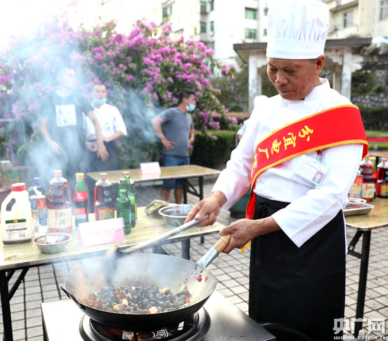 分宜電廠螺螄創(chuàng)始人陳長青在炒螺螄比賽(央廣網(wǎng)發(fā) 通訊員 提供)