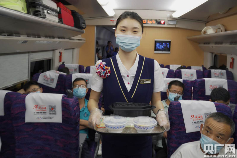 央廣網(wǎng)南昌9月2日消息(記者范存寶 通訊員吳朋珊)“給我拿一份剁椒魚,一份豆角燒茄子,一份秘制黃牛肉,再來兩小份米飯!9月2日,在南昌至南昌的D6266次列車上,旅客于蕙妍和朋友正在點菜,與以往列車上提供的盒飯不同,現(xiàn)在列車上推出了獨立包裝的小碗菜和小碗飯,“一份一小碗,一菜一包裝”,讓旅客擁有更多選擇。