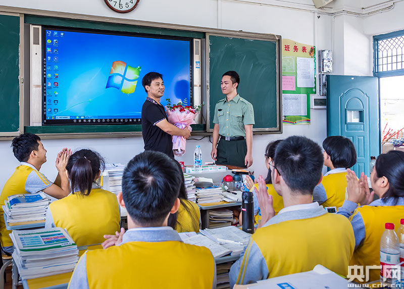 李紀(jì)星回母校為高三復(fù)讀班老師獻(xiàn)花,以謝師恩(央廣網(wǎng)發(fā) 通訊員供圖)