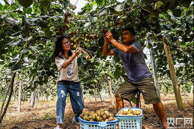 市民正在采摘獼猴桃(央廣網(wǎng)發(fā) 通訊員供圖)