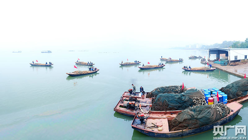 央廣網(wǎng)進賢9月28日消息(記者王一凡 通訊員李紅梅 樊哲平)金秋時節(jié),又到了一年漁業(yè)豐收的時候。9月28日清晨,開湖儀式后,進賢縣軍山湖漁島碼頭百船競發(fā),專業(yè)捕撈隊將在32萬畝的軍山湖進行歷時3個月的拉網(wǎng)趕魚,把軍山湖的大閘蟹和鮮魚集中到湖汊進行捕撈,供應(yīng)中秋、國慶和春節(jié)市場。