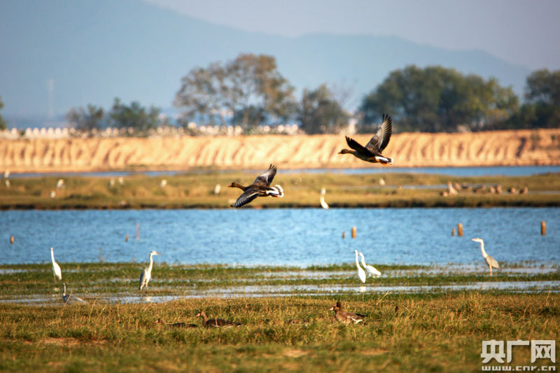 央廣網(wǎng)九江10月13日消息(記者鄧玉玲 通訊員胡葦 杜春泉 楊禹)近日,江西都昌縣多寶鄉(xiāng)馬影湖區(qū)的越冬候鳥逐漸多了起來,成群結(jié)隊的豆雁、白額雁、白琵鷺、灰鶴等30多個種群的近萬只冬候鳥與當?shù)氐南暮蝤B留鳥白鷺一起覓食、棲息,成為湖區(qū)觀鳥的一道靚麗的風景線。