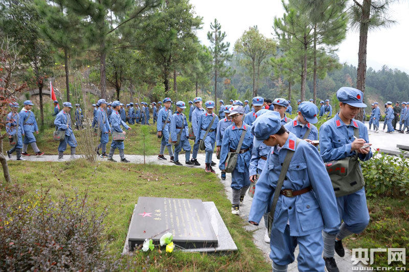 學(xué)生們在紅色革命根據(jù)地東固鎮(zhèn)瞻仰紅軍烈士陵園(央廣網(wǎng)發(fā) 通訊員供圖)