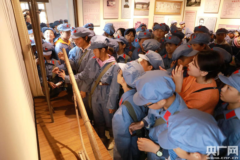 學(xué)生們在東固鎮(zhèn)革命根據(jù)地博物館觀看紅軍革命歷史文物(央廣網(wǎng)發(fā) 通訊員供圖)
