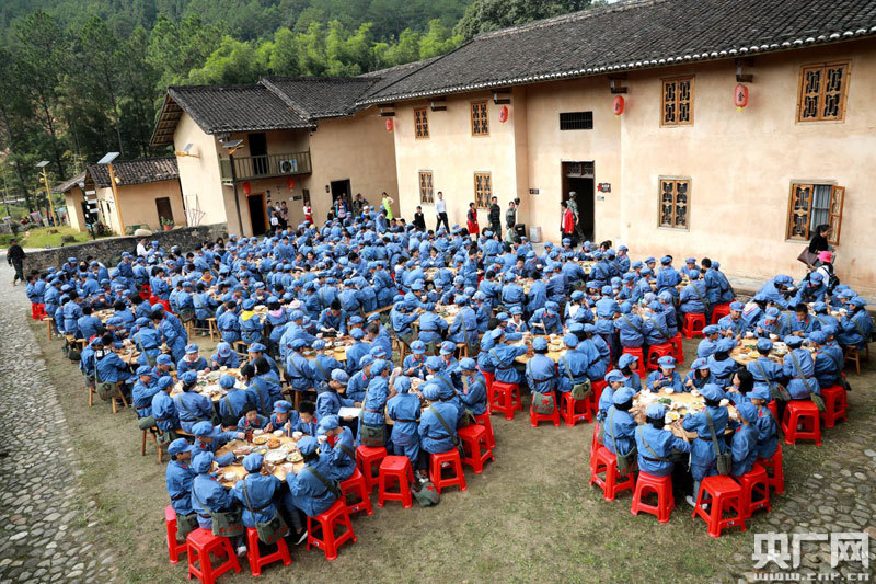 學(xué)生們在紅色革命根據(jù)地東固鎮(zhèn)敖上村體驗農(nóng)家飯(央廣網(wǎng)發(fā) 通訊員供圖)
