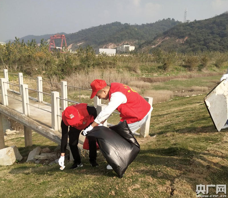 志愿者撿拾垃圾(央廣網(wǎng)發(fā) 通訊員供圖)