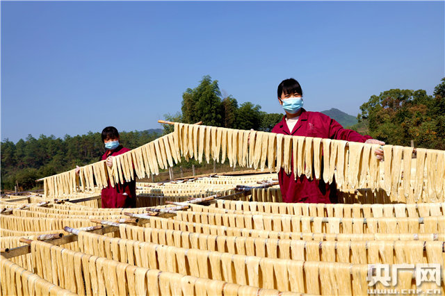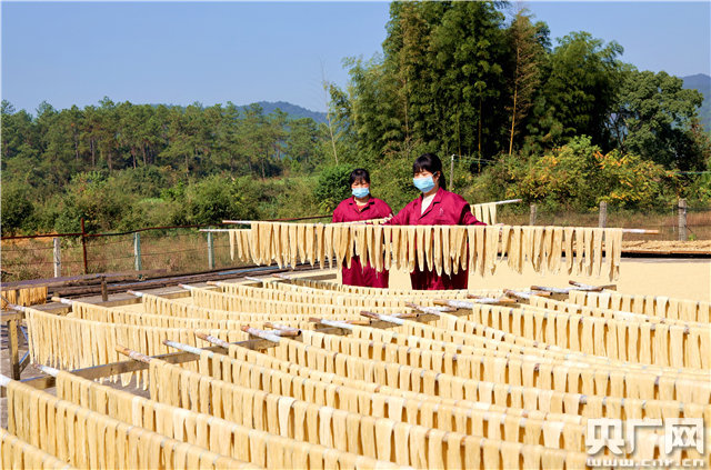 央廣網(wǎng)吉水11月8日消息(記者胡斐 通訊員廖敏)2020年11月6日,立冬將至,江西省吉安市吉水縣水南鎮(zhèn)西團(tuán)村天意腐竹合作社,村民正在晾曬腐竹。
