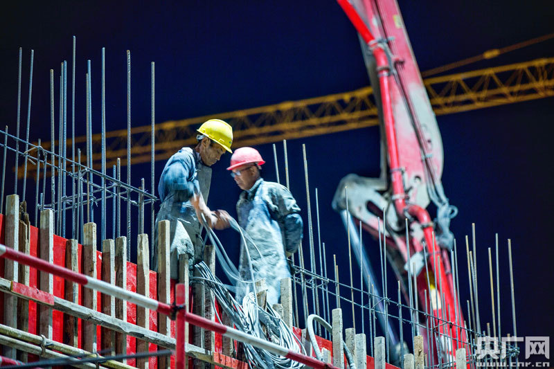 建設(shè)者在施工作業(yè)(央廣網(wǎng)發(fā) 通訊員傅建斌 攝)