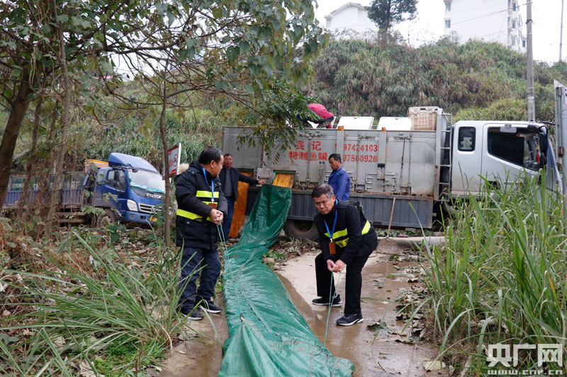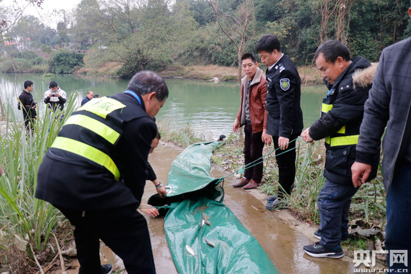 使用專業(yè)漁網(wǎng)放生(央廣網(wǎng)發(fā) 通訊員供圖)